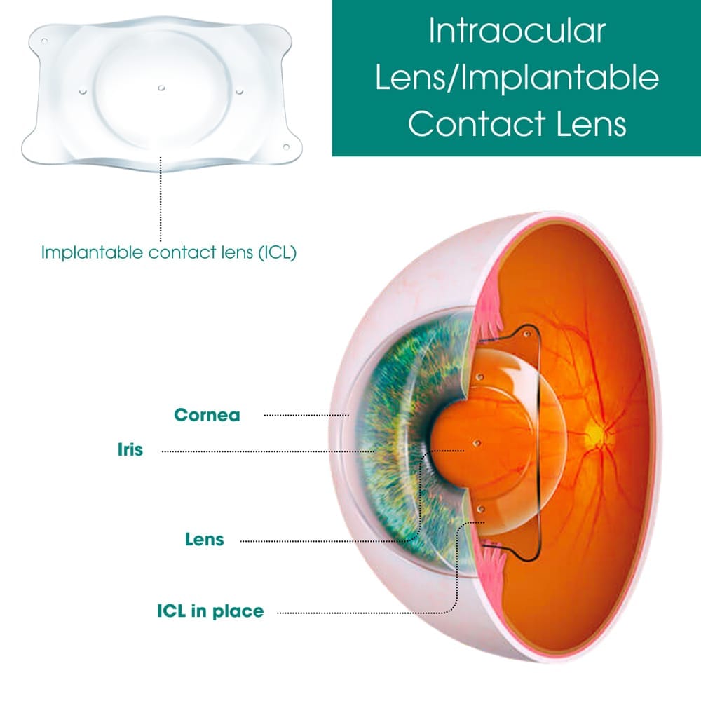IOLs replace clouded lenses in cataracts, whereas ICLs modify focus points to rectify refractive faults, allowing for better vision without glasses or contacts. The procedures are used to treat a variety of eye conditions, including: